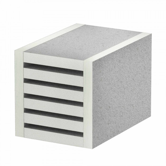 Предназначение вентиляционного блока - обеспечение циркуляции воздуха и отвод тепла из огнестойкого кабельного короба в стандартных условиях работы. Материал вентблока - силикат кальция. Кроме того, в состав входит вспучивающийся материал, который при воздействии пожара образует теплоизоляционную пену, заполняющую собой вентиляционные отверстия. Габариты - 100х100х40 мм.